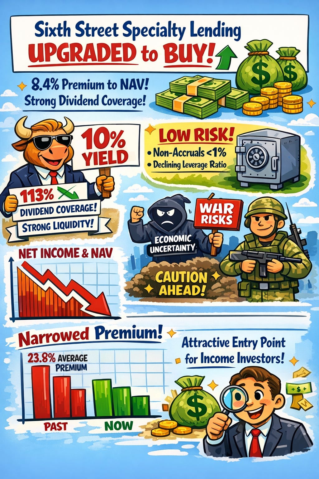 A ~10% yield, supported by strong coverage and a solid balance sheet, combined with a significantly reduced premium, creates a much more balanced risk/reward profile.