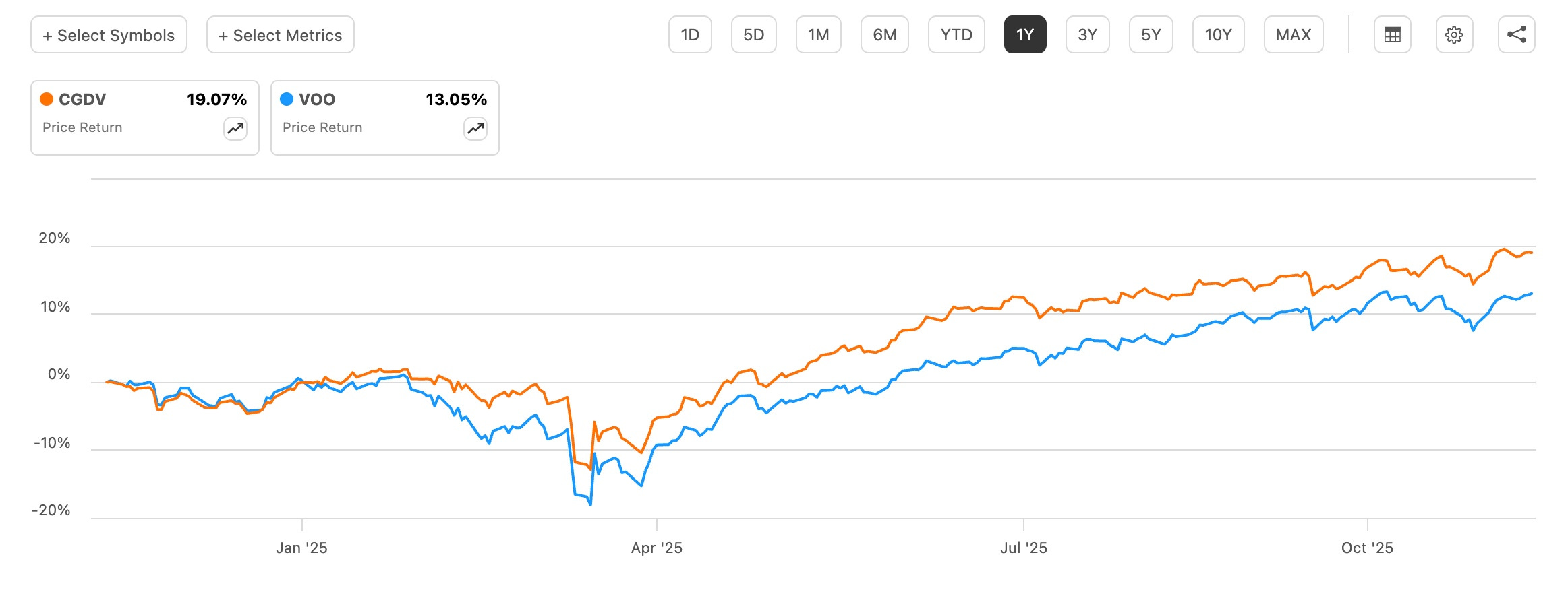 1-year vs VOO price return: