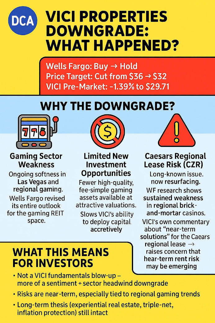 VICI owns most of the hotels on the Las Vegas Strip like Caesar’s Palace, MGM Grand, The Venetian, & Mandalay Bay. 🏢