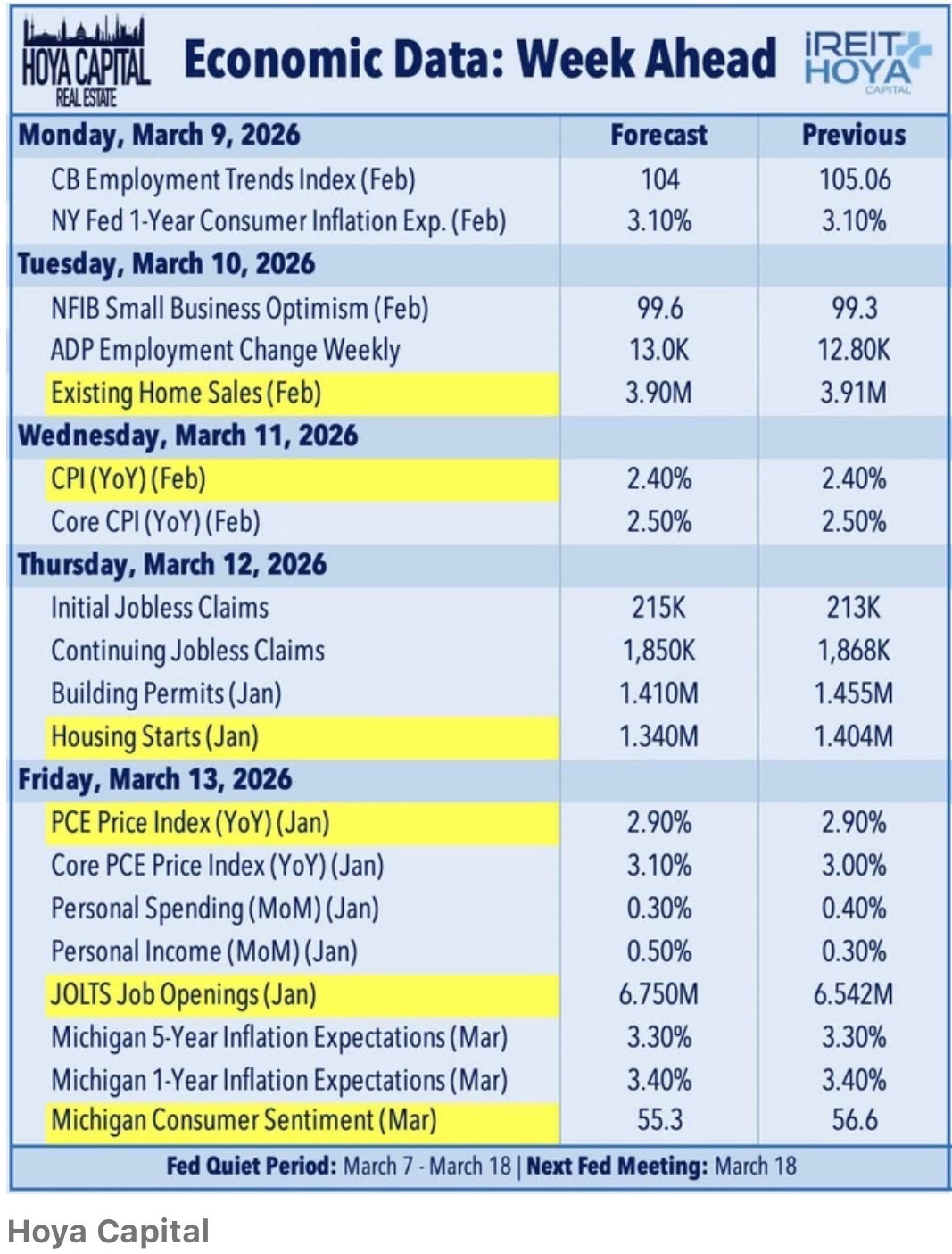 It will be another busy week for economic data as markets prepare for the March 18th Federal Reserve rate decision. With the Fed entering its quiet period, incoming economic reports will play a key role in shaping rate expectations.