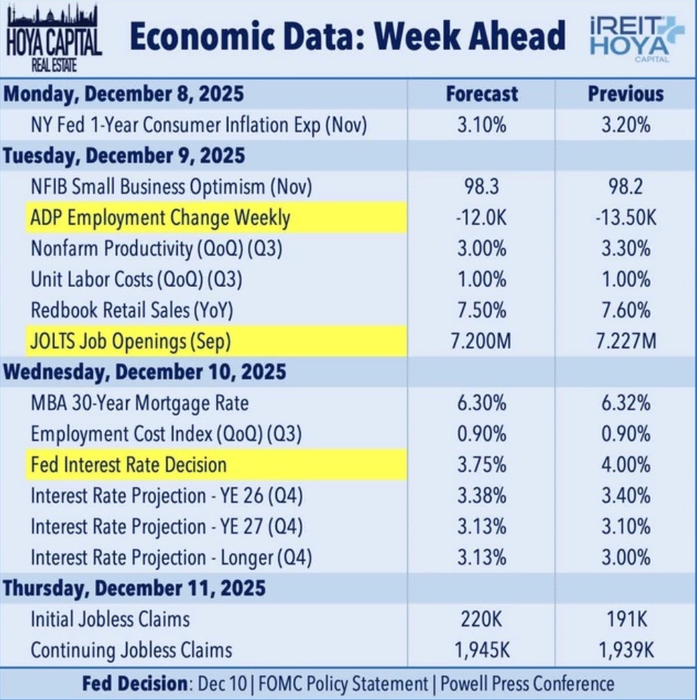 Economic data for the week of Dec 8th, 2025: 🗓️