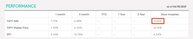 And while their put options are supposed to offer some downside protection, the fund's share price has declined as a result of their high distributions. And YSPY's short track record is also something to consider with only 7 months since its inception, meaning there's very limited data to analyze.