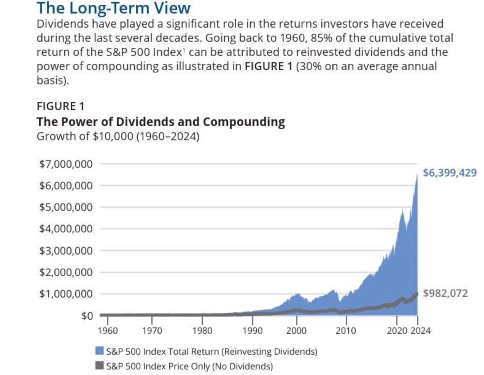 With dividends reinvested, that same $10,000 grew to approximately $6.4 million—more than 5x higher.