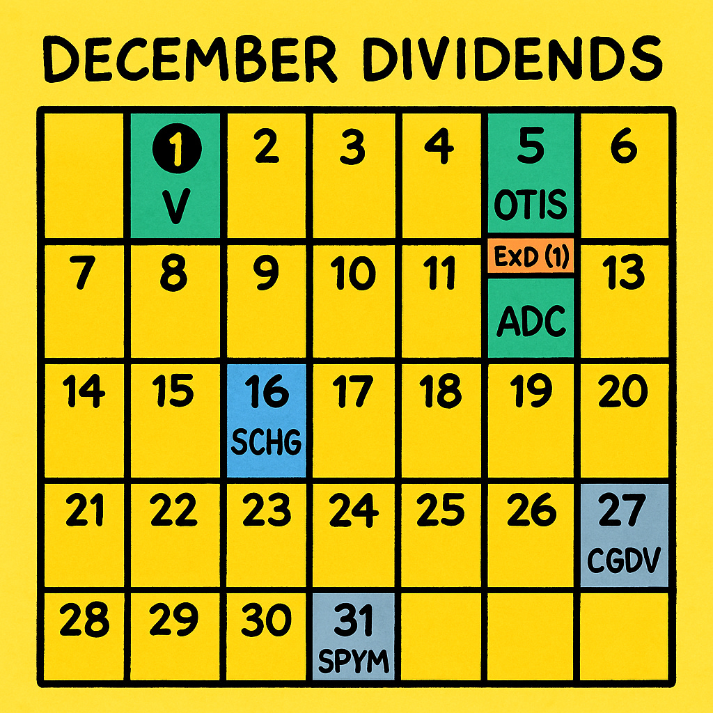 The calendar above shows my dividends for the month of December.