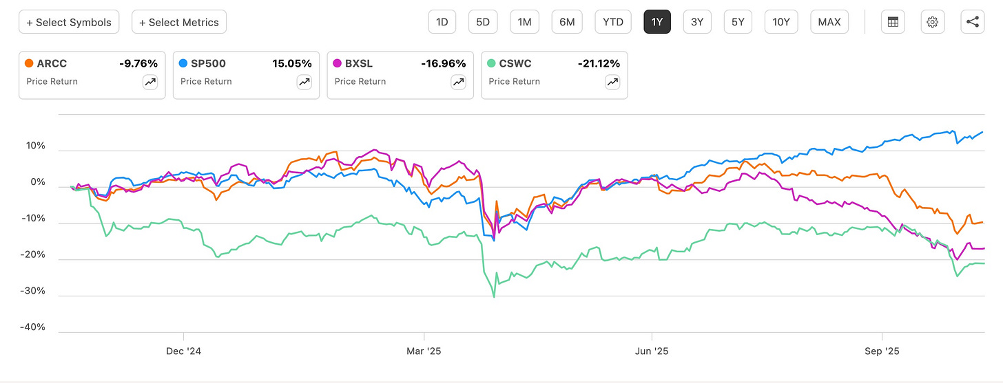 And this is evident by BDC performances in the last year. ARCC, BXSL, & CSWC are all in the red, while the S&P is up roughly 15%. This is why I say it’s prudent to know what you own and why you own it. Economic factors that impact your holdings are also important.