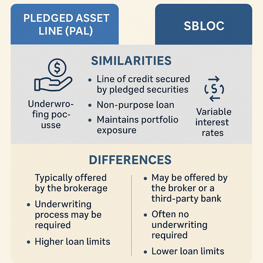 Below is another chart I created comparing a SBLOC to what is known as a Pledged Asset Line. The two are very similar in nature.