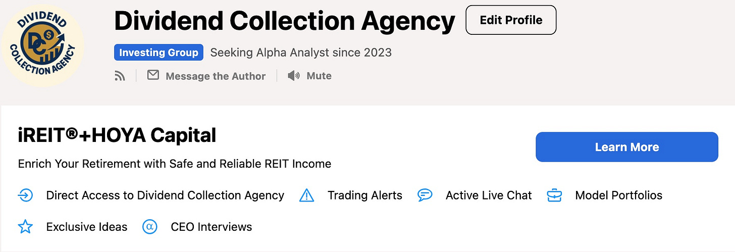 If you want to build passive income, particularly through REITs, check out our investing group over on Seeking Alpha for 2 weeks FREE.