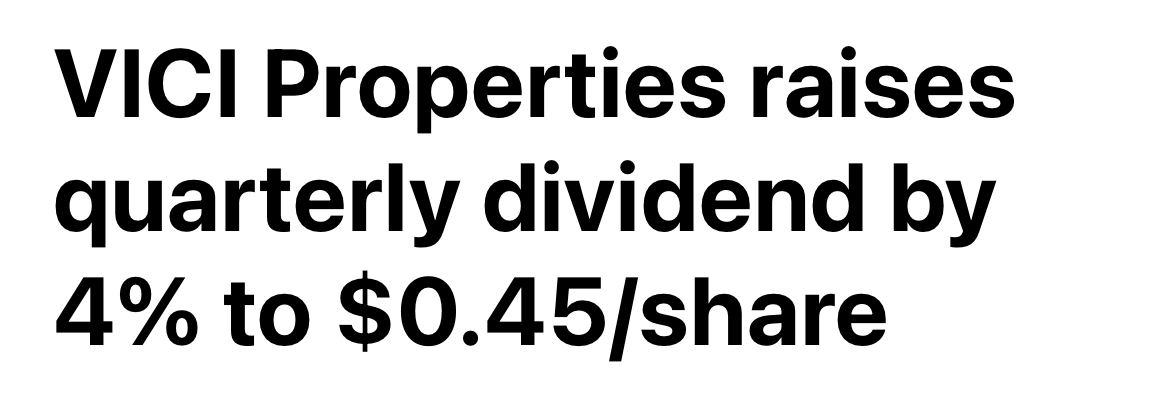 For example, one of my favorite REITs VICI Properties (VICI) raised their dividend last month by 4%. The current rate of inflation is 2.9%, up from 2.7% the month prior.