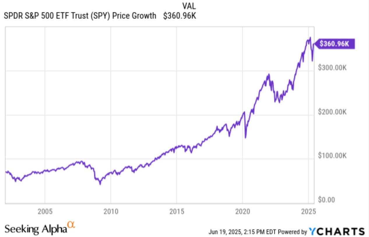 Below is how much half of your $140,000 investment would be worth if placed into SPY, the oldest ETF that tracks the S&P 500. It would be worth almost $361,000.