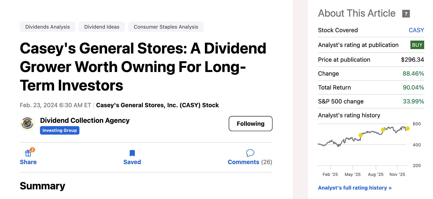 Despite its modest dividend yield, CASY looked like an ideal holding for dividend investors who value quality, consistency, and growth.