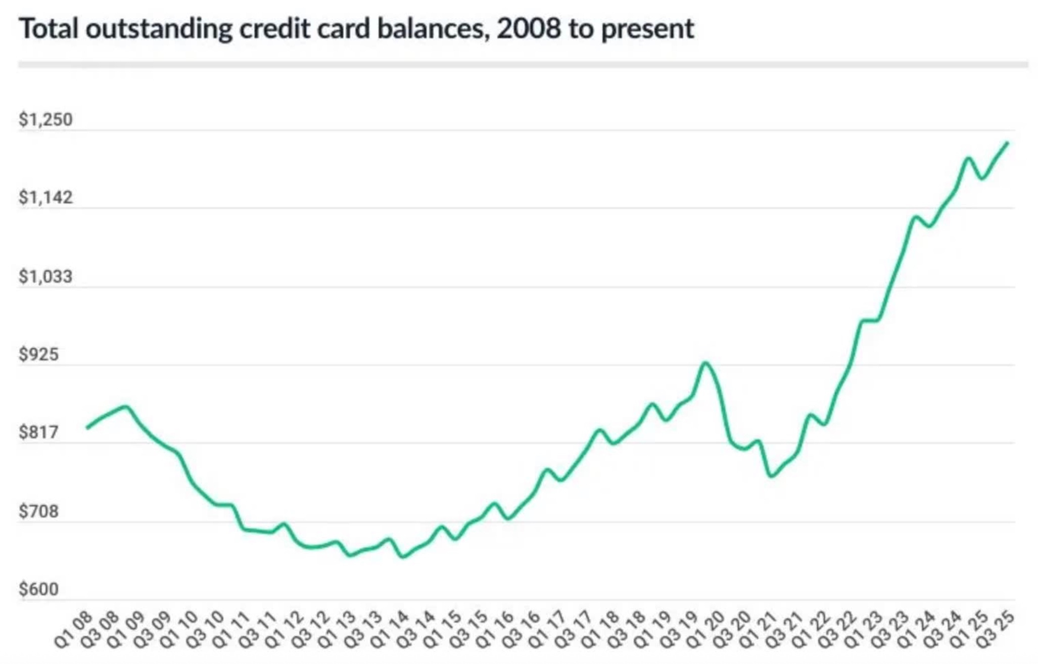Today, U.S. credit card debt exceeds $1 trillion, a flashing red warning sign of household stress.