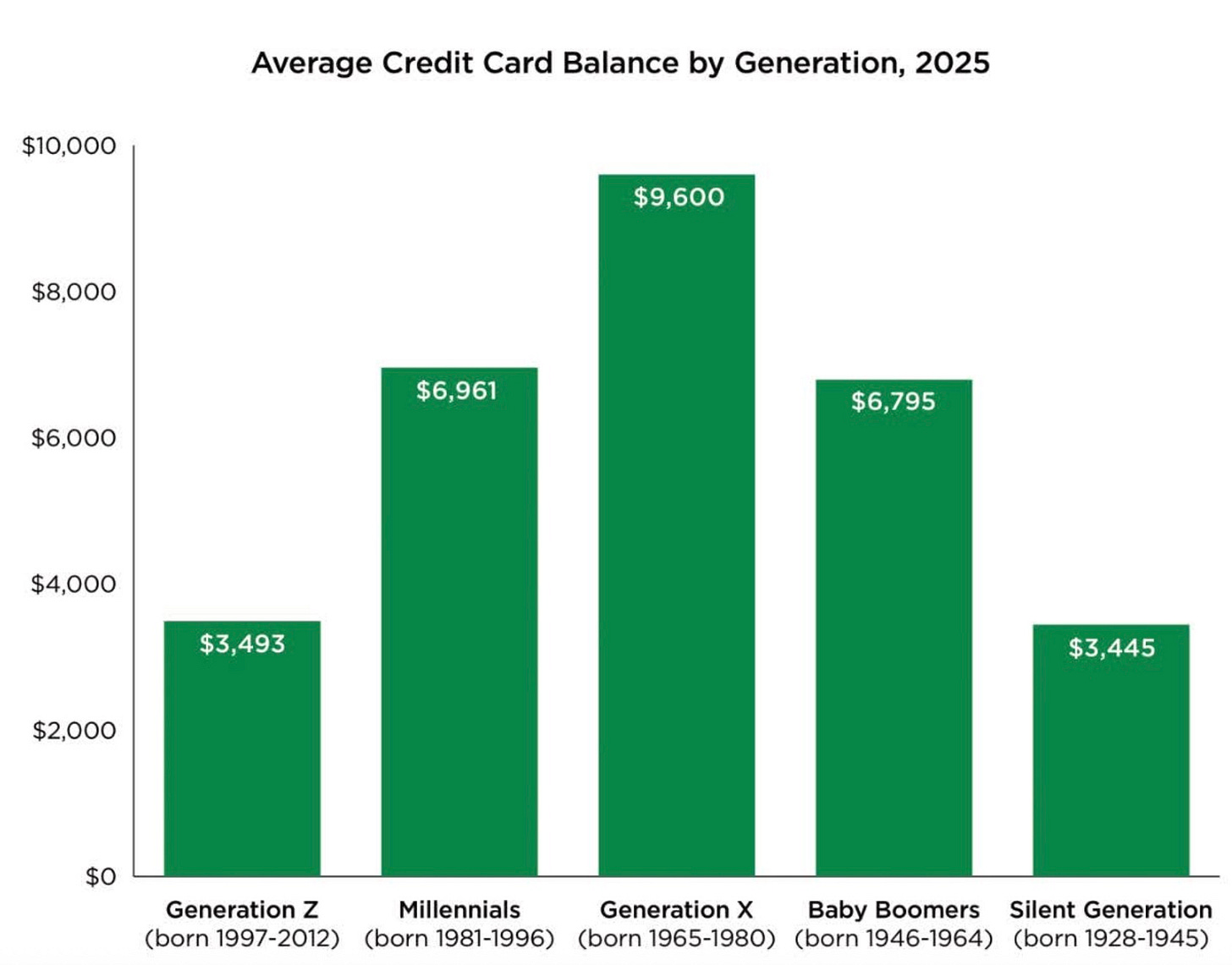 Below is the average credit card balance by generations.