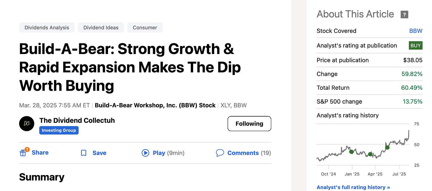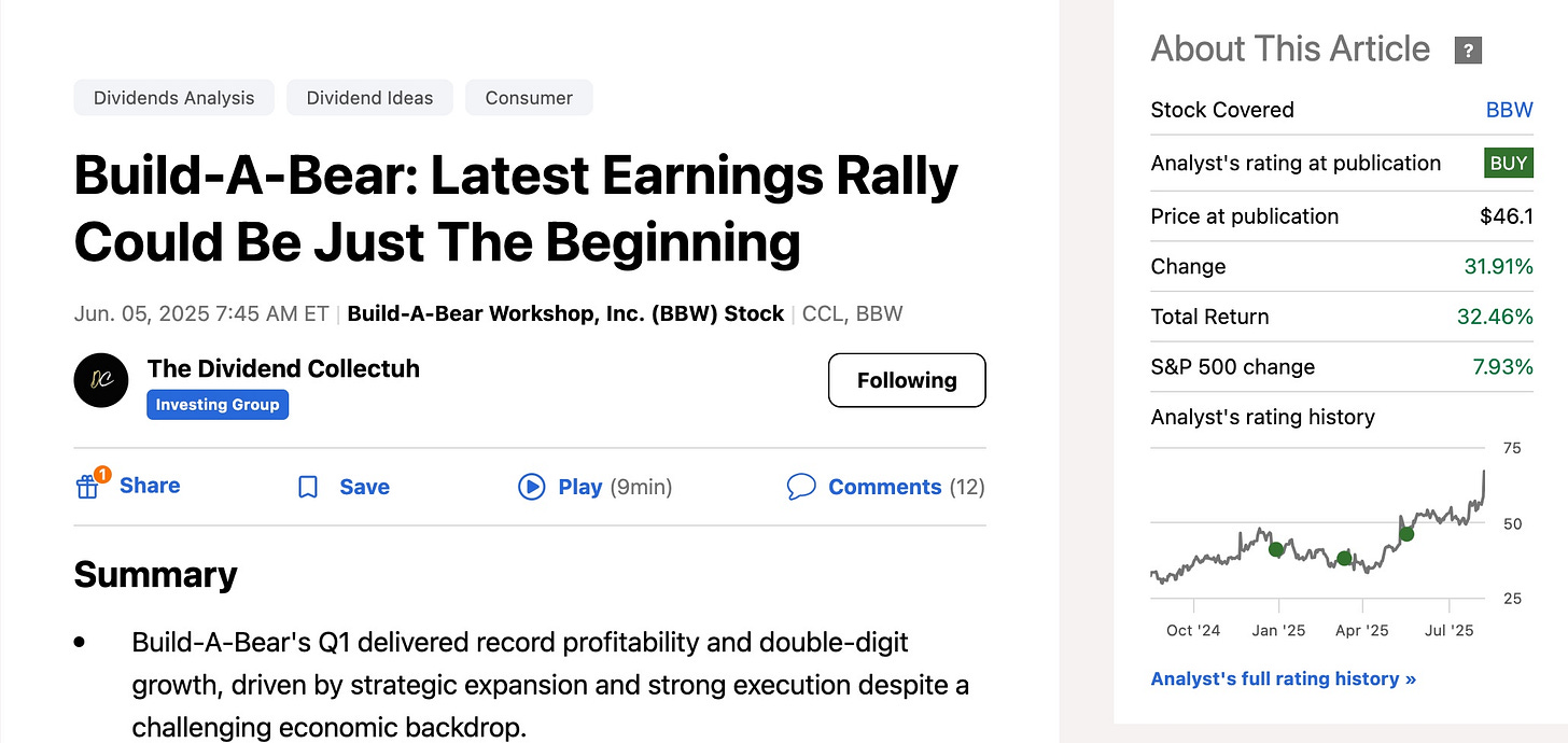 For more in-depth coverage of Build-A-Bear and other quality stocks, you can read more by following me on Seeking Alpha.
