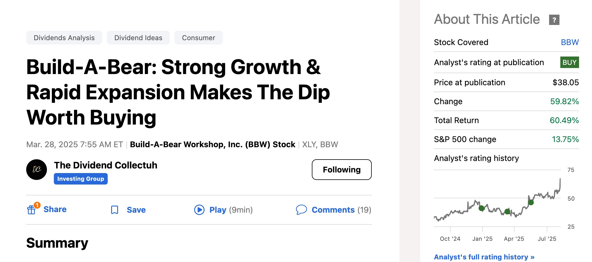 Below are Seeking Alpha articles I’ve written on BBW telling investors to buy: