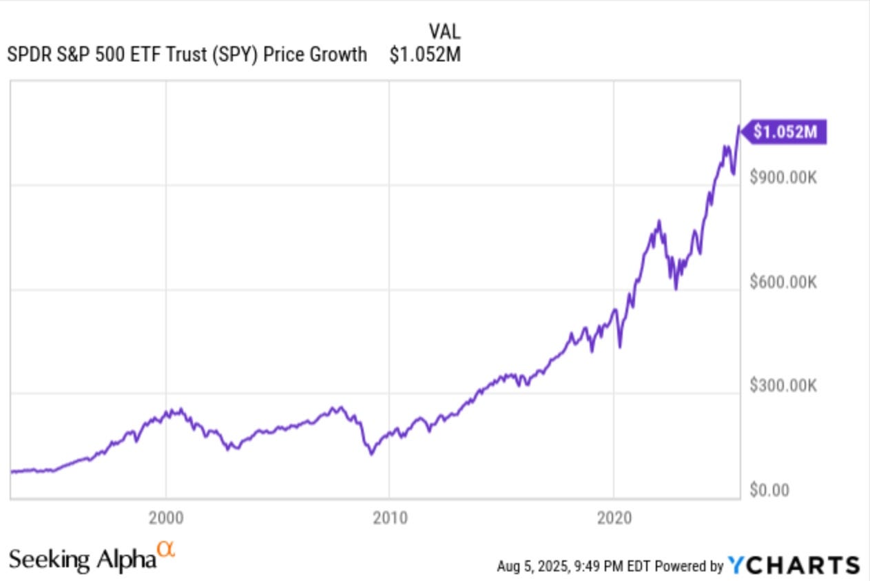 In 1980, the average price to buy a home was $73,600. Even if you held that money and invested it 13 years later into the first S&P 500 ETF (SPY), it would be worth over $1 million today, not including dividends.