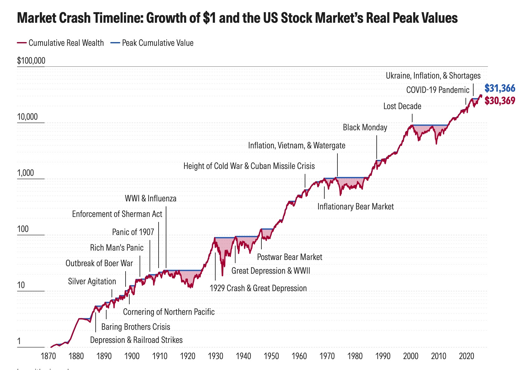 Over that time years we’ve seen the crash in 1914 during World War l, the crash in 1929, the recession of 1937, Black Monday in 1987, the Dotcom bubble in 2000, the Great Financial Crisis in 2008, COVID, and the Liberation Day crash from President Trump’s tariffs in April of this year to name a quite a few.